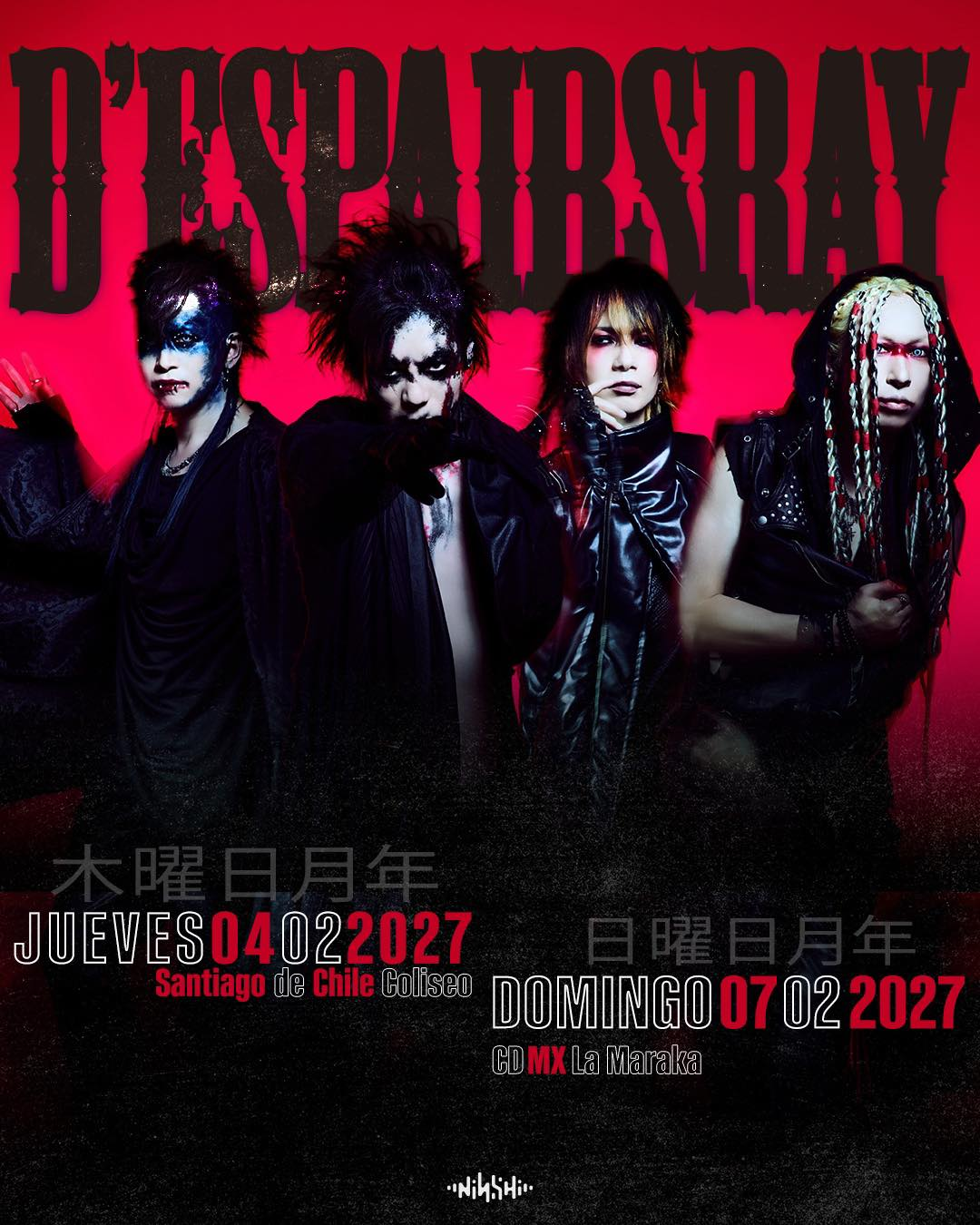La icónica banda japonesa D’espairsRay ha confirmado nuevas fechas en Latinoamérica para 2027, marcando su esperado regreso a la región tras años de ausencia. Con una propuesta que mezcla visual kei, industrial y metal alternativo, el grupo mantiene un estatus de culto dentro de la escena global.