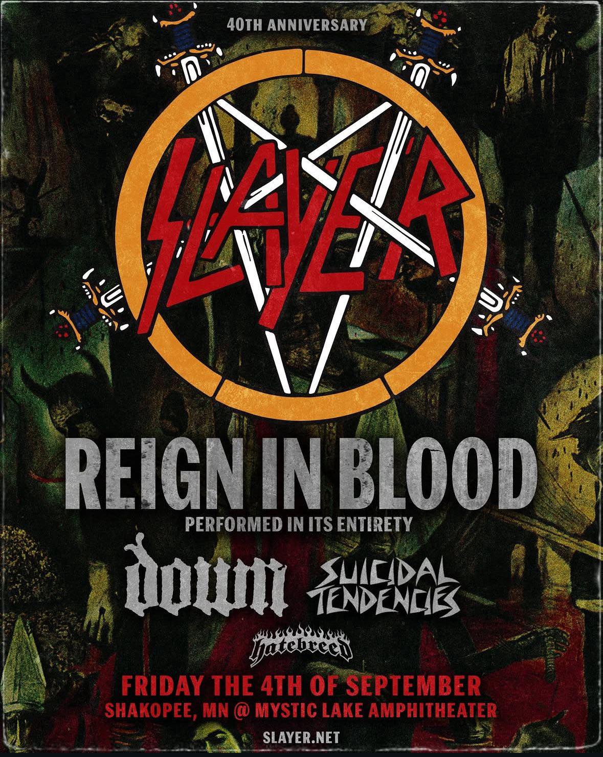 2026vie04sep6:00 pmvie11:58 pmSlayer — Minneapolis [USA]Mystic Lake Amphitheater, 712 Canterbury RdLocación:USA